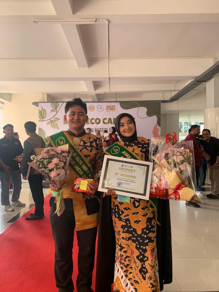 Kabar membanggakan datang dari Eco Campus FMIPA UNESA. Dua perwakilan terbaiknya, M. Daffa Ubaidillah Wahab dari Prodi Matematika dan Nevrina Zahwa Pratiwi dari Prodi Pendidikan Biologi, berhasil meraih Juara 3 dalam ajang Duta Eco CampusUNESA 2025.Ajang bergengsi ini menjadi wadah bagi mahasiswa untuk menunjukkan kepedulian, pengetahuan, serta gagasan inovatif dalam mewujudkan kampus yang berkelanjutan. Melalui proses seleksi yang ketat, mulai dari penilaian wawasan lingkungan, public speaking, hingga presentasi program aksi, Daffa dan Nevrina berhasil menorehkan prestasi gemilang yang mengharumkan nama FMIPA.Dengan semangat kolaborasi, keduanya mengusung visi “Green Action, Smart Generation” yang menekankan pentingnya perubahan perilaku kecil sebagai fondasi menuju gaya hidup ramah lingkungan di lingkungan kampus.